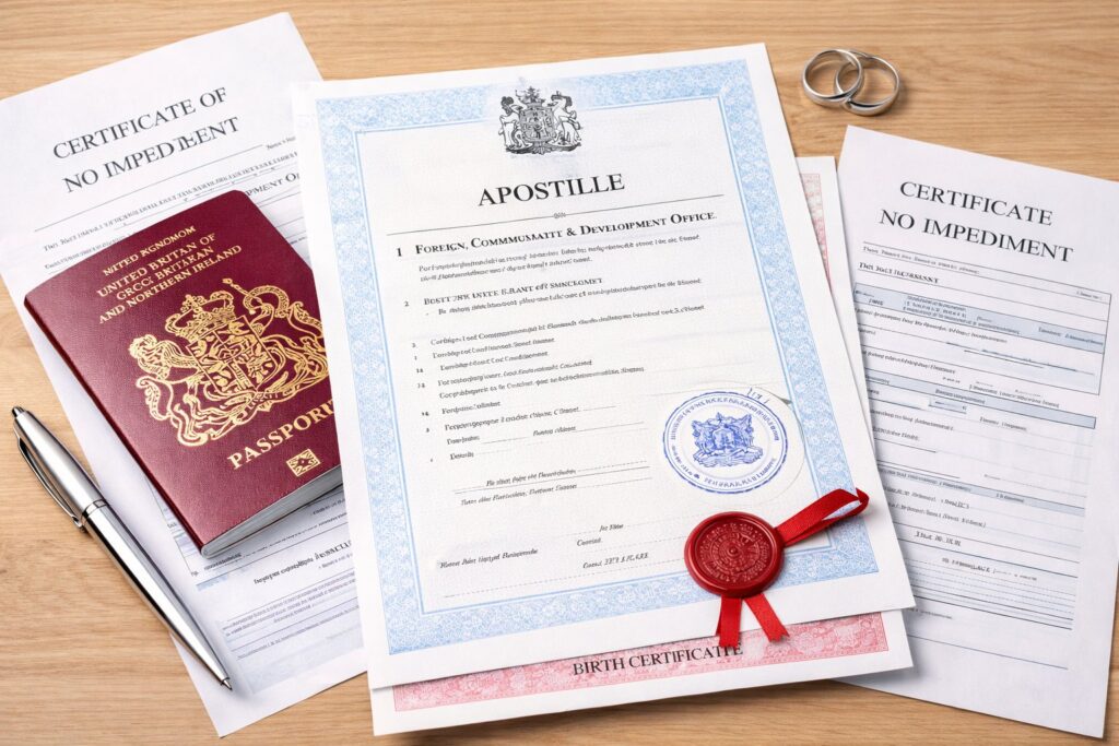 Although the marriage process itself may be simple, there are situations where UK documents must be legalised for international recognition.