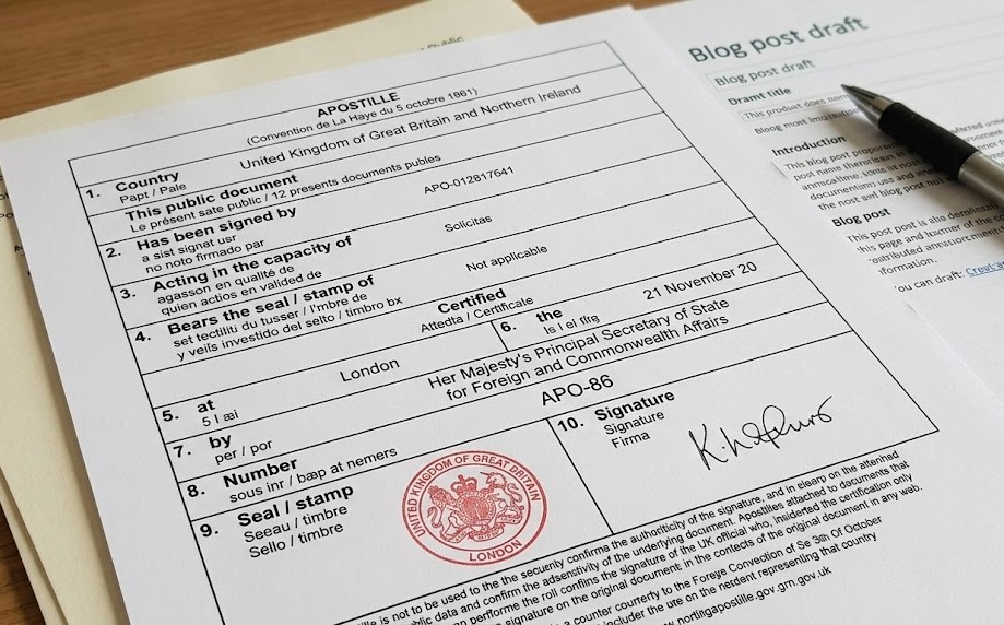 For UK documents, apostilles are issued by the Foreign, Commonwealth & Development Office (FCDO).