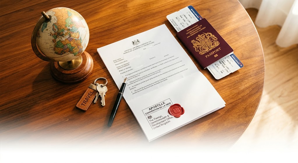 An apostille is an official certificate issued by the UK government that verifies the authenticity of a document for use abroad. It is issued by the Foreign, Commonwealth & Development Office (FCDO).